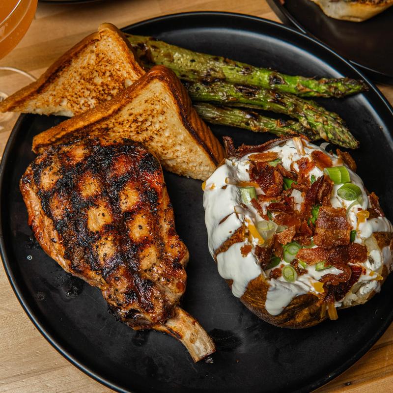 Grilled 12 oz hand-cut ribeye steak with house bourbon sauce
